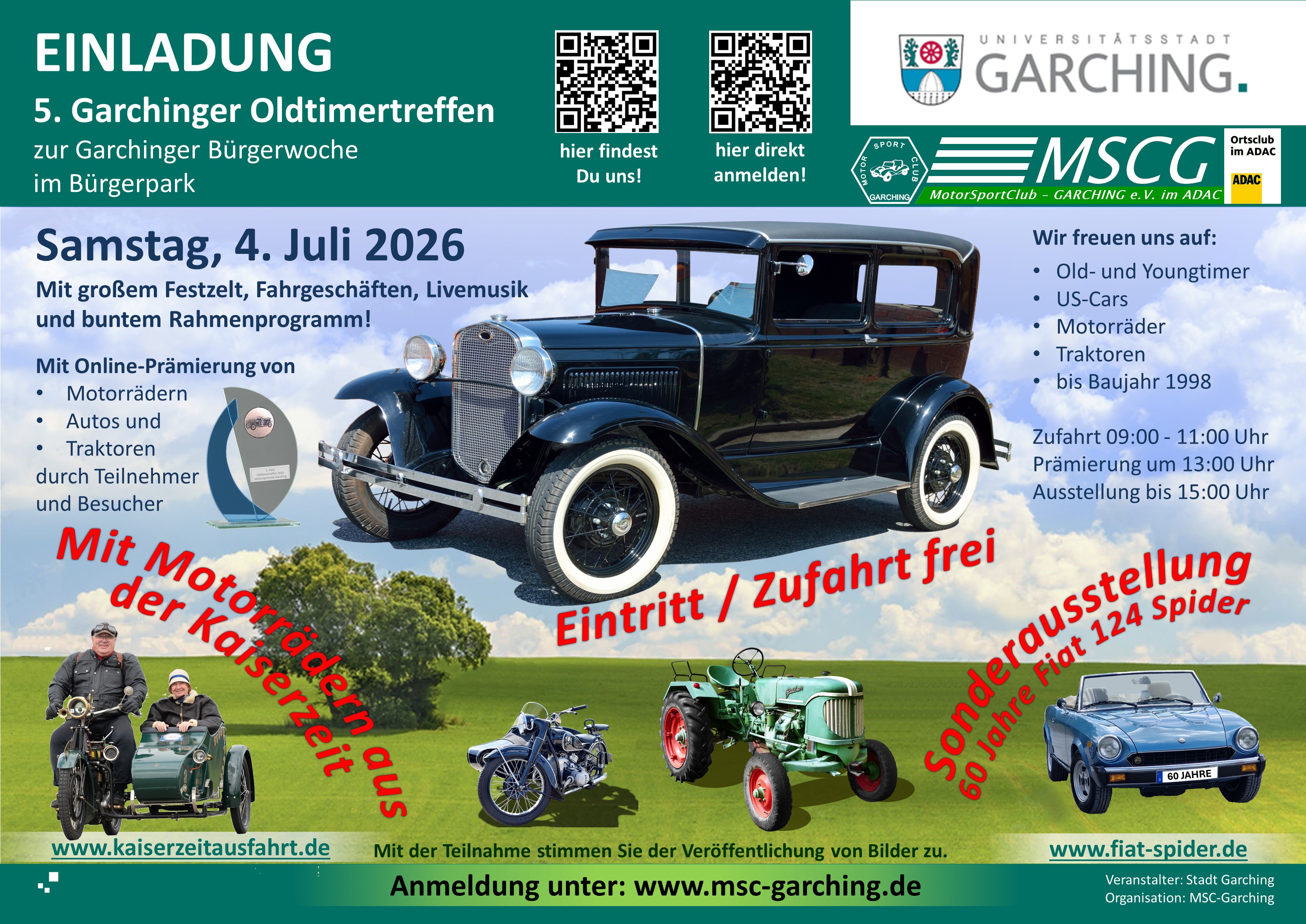 Am 4. Juli 2026 findet unser fünftes Garchinger Oldtimertreffen statt.