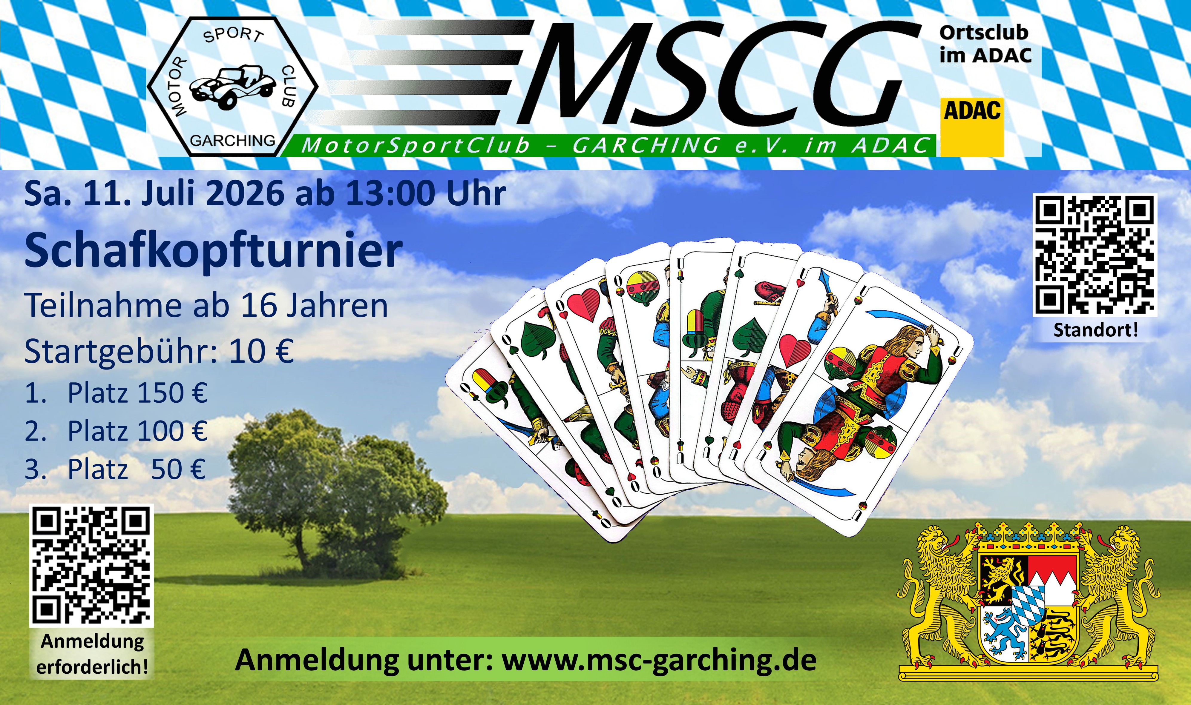 Wir veranstalten zum Straßenfest am Samstag, 11. Juli 2026 von 13:00 bis 16:00 Uhr unser erstes Schafkopfturnier. Den Flyer zum Event findet ihr hier.